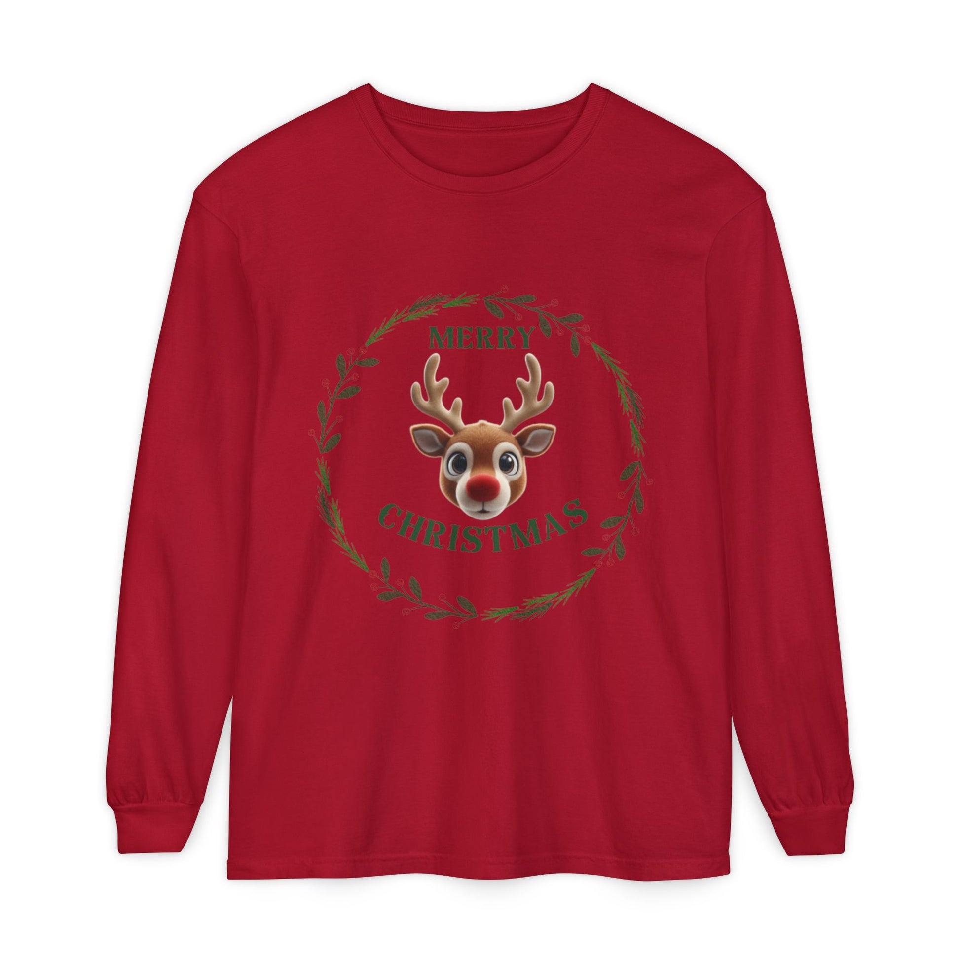 Get into the holiday spirit with this cozy unisex long sleeve t-shirt, perfect for chilly winter gatherings. The vibrant design features a cheerful reindeer, making it a delightful addition to your festive wardrobe. Whether you're decorating the tree, enjoying a cozy night in, or attending a holiday party, this t-shirt adds a fun and light-hearted vibe to any occasion. It's ideal for families looking to celebrate Christmas together or anyone wanting to spread some seasonal cheer. This shirt also makes a thoughtful gift for friends and loved ones during the holiday season, ensuring everyone feels warm and festive.
