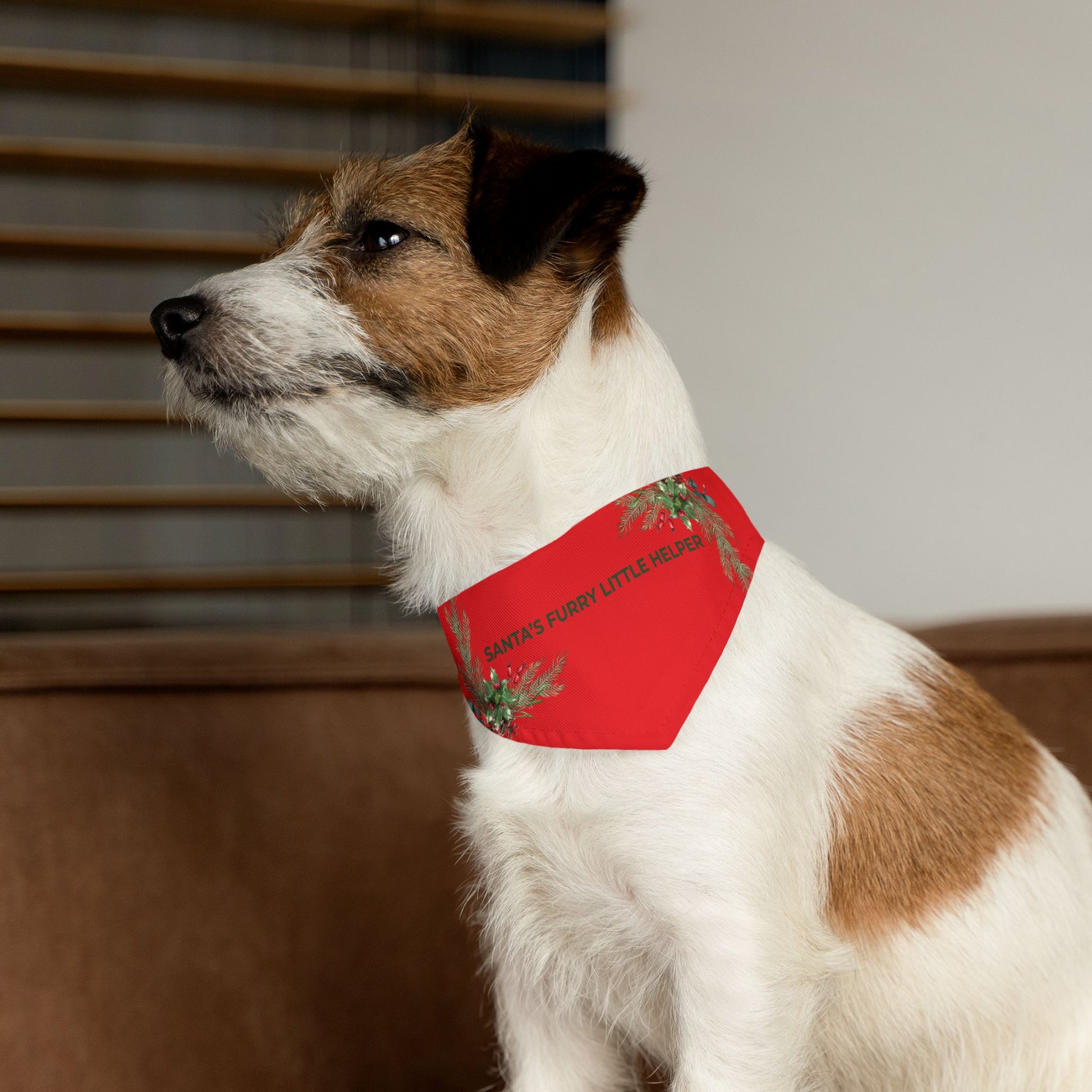 Pet Bandana — "Santa's Furry Little Helper" Red Holiday Collar Bandana for Dogs & Cats