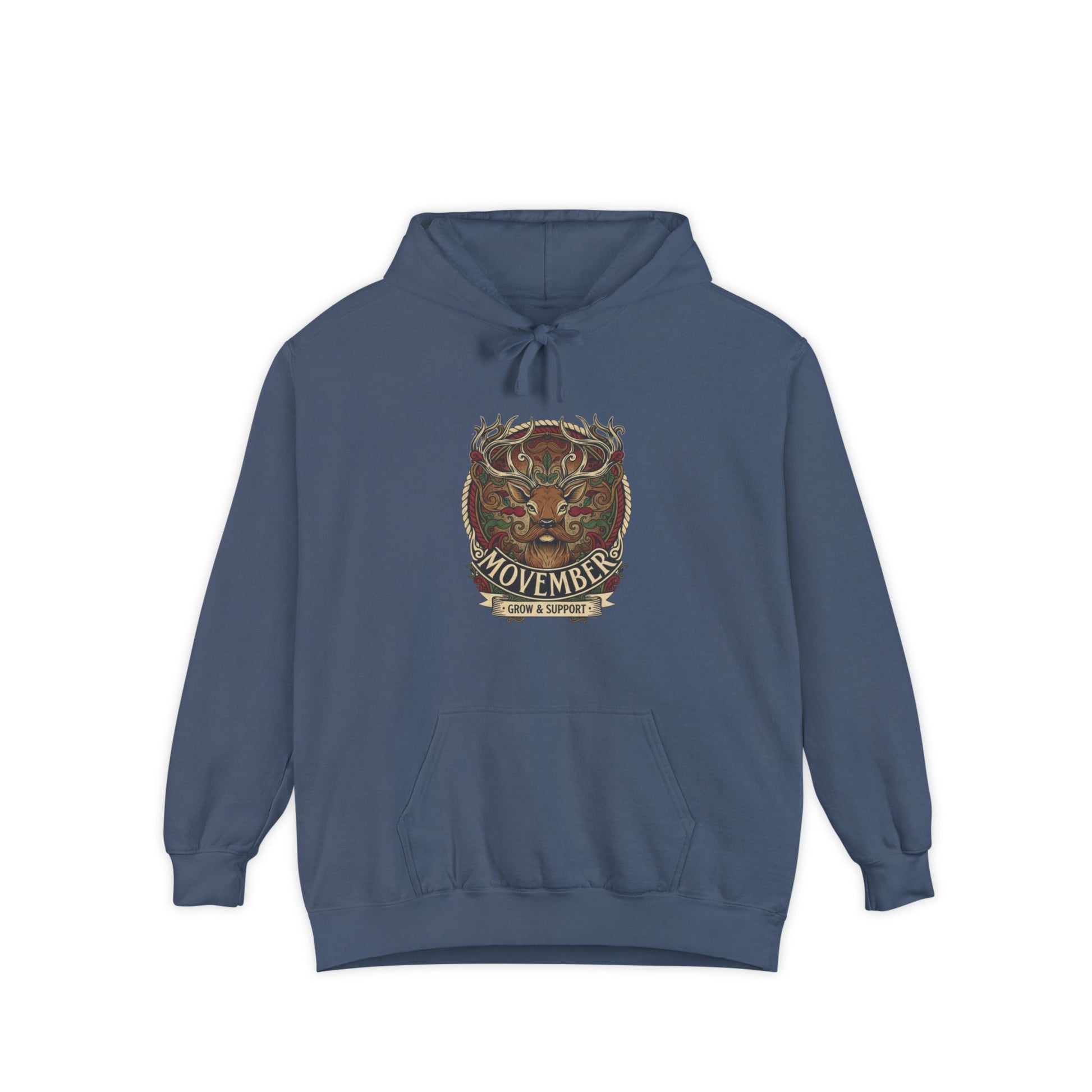 This hoodie features a distinguished stag rocking a proud Movember ‘stache — a playful symbol of strength, growth, and support. Soft on the inside, statement-ready on the outside, it’s here for cozy days, coffee runs, charity events, or just living your best mustached life.