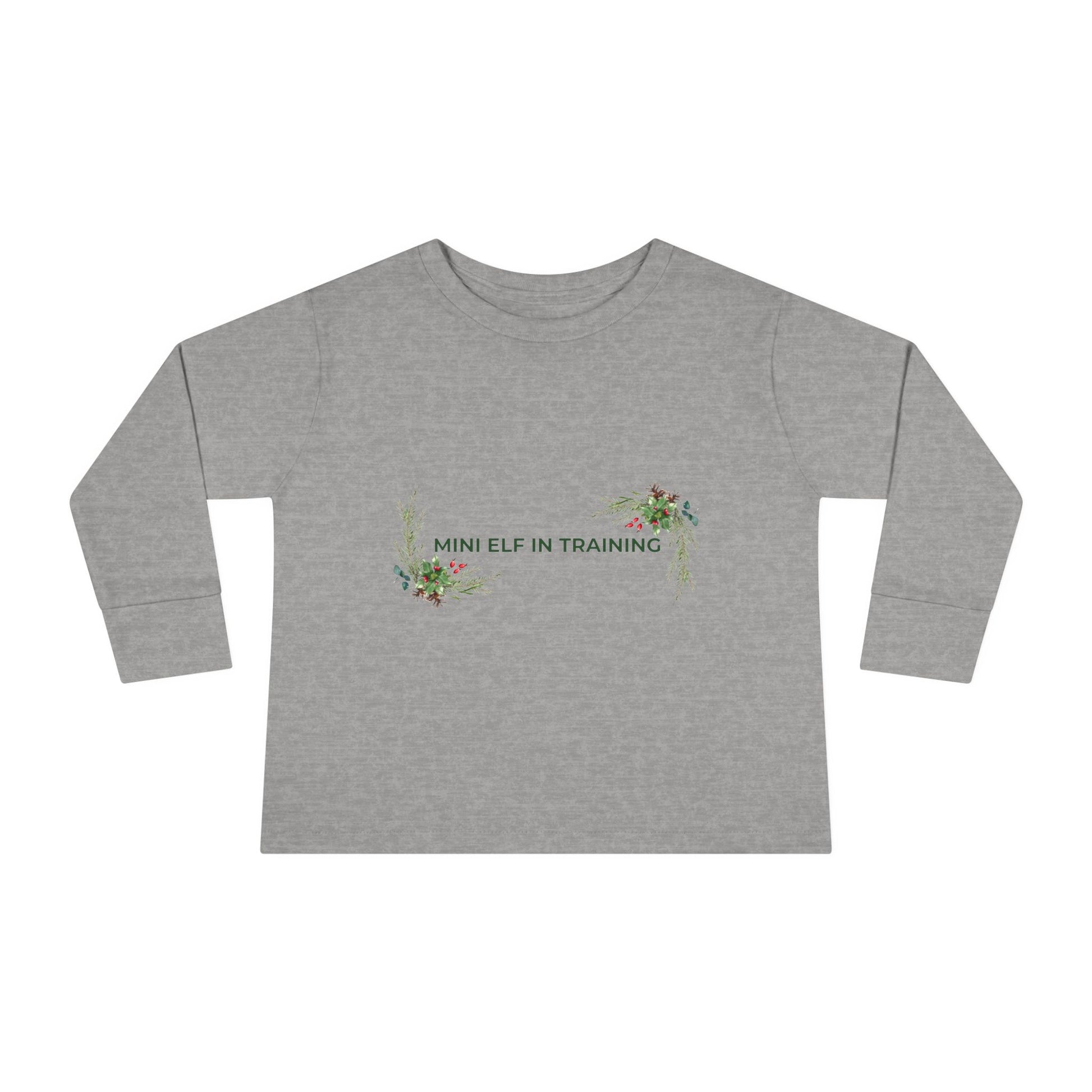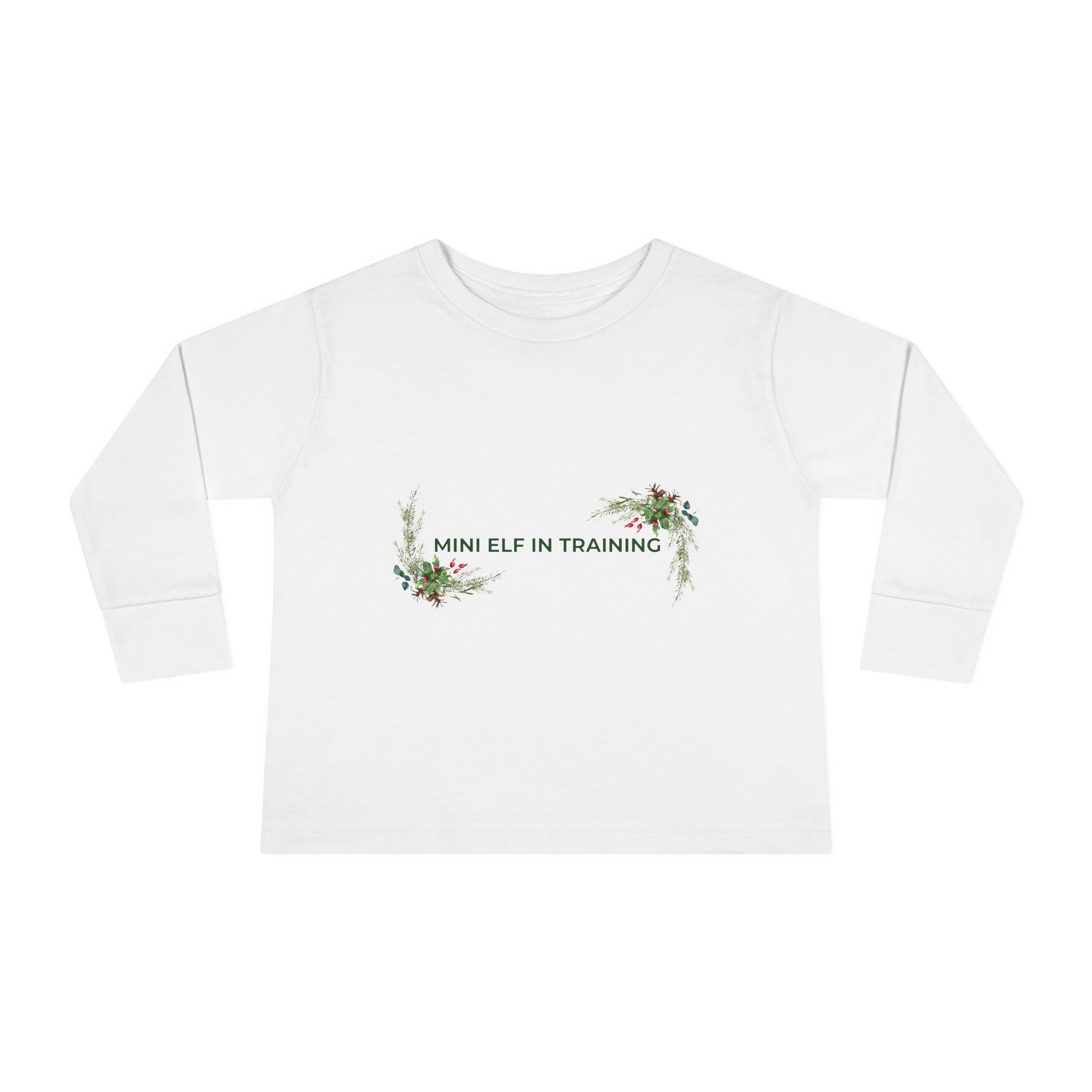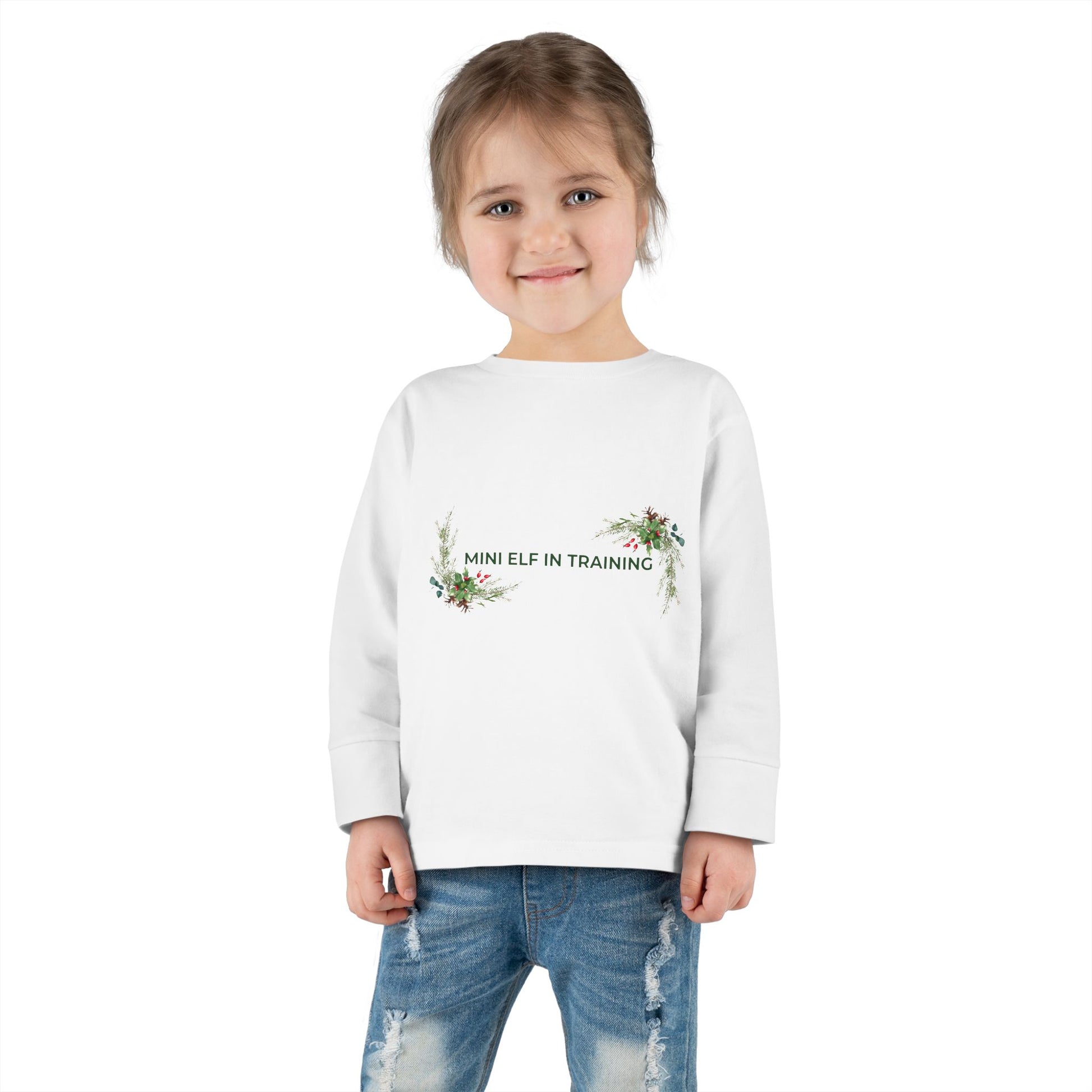 Toddler Long Sleeve Tee — "Mini Elf In Training" Holiday Floral Baby Shirt