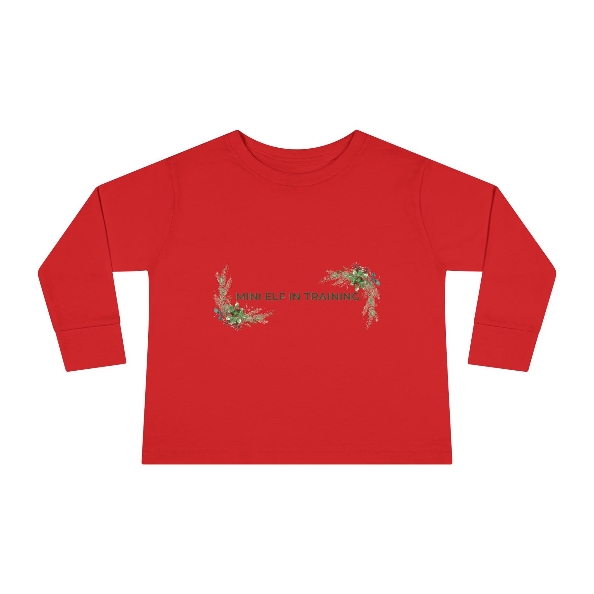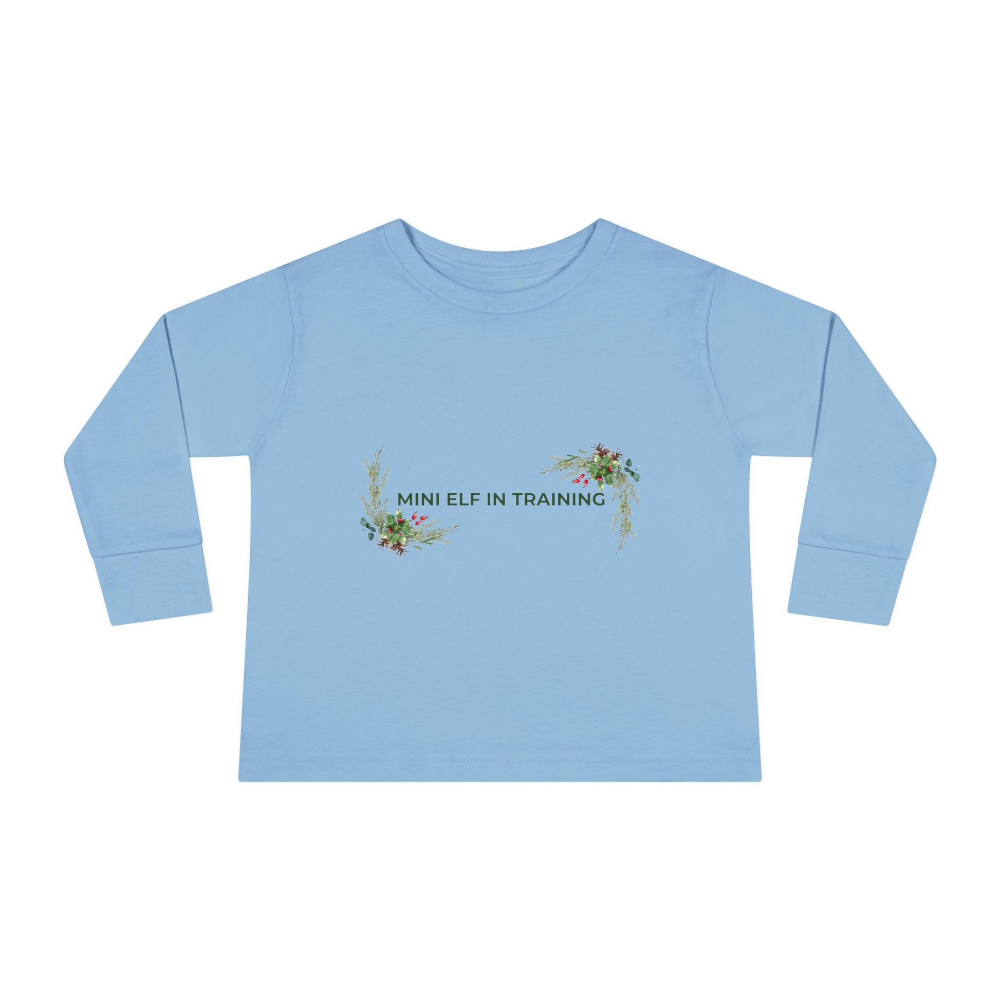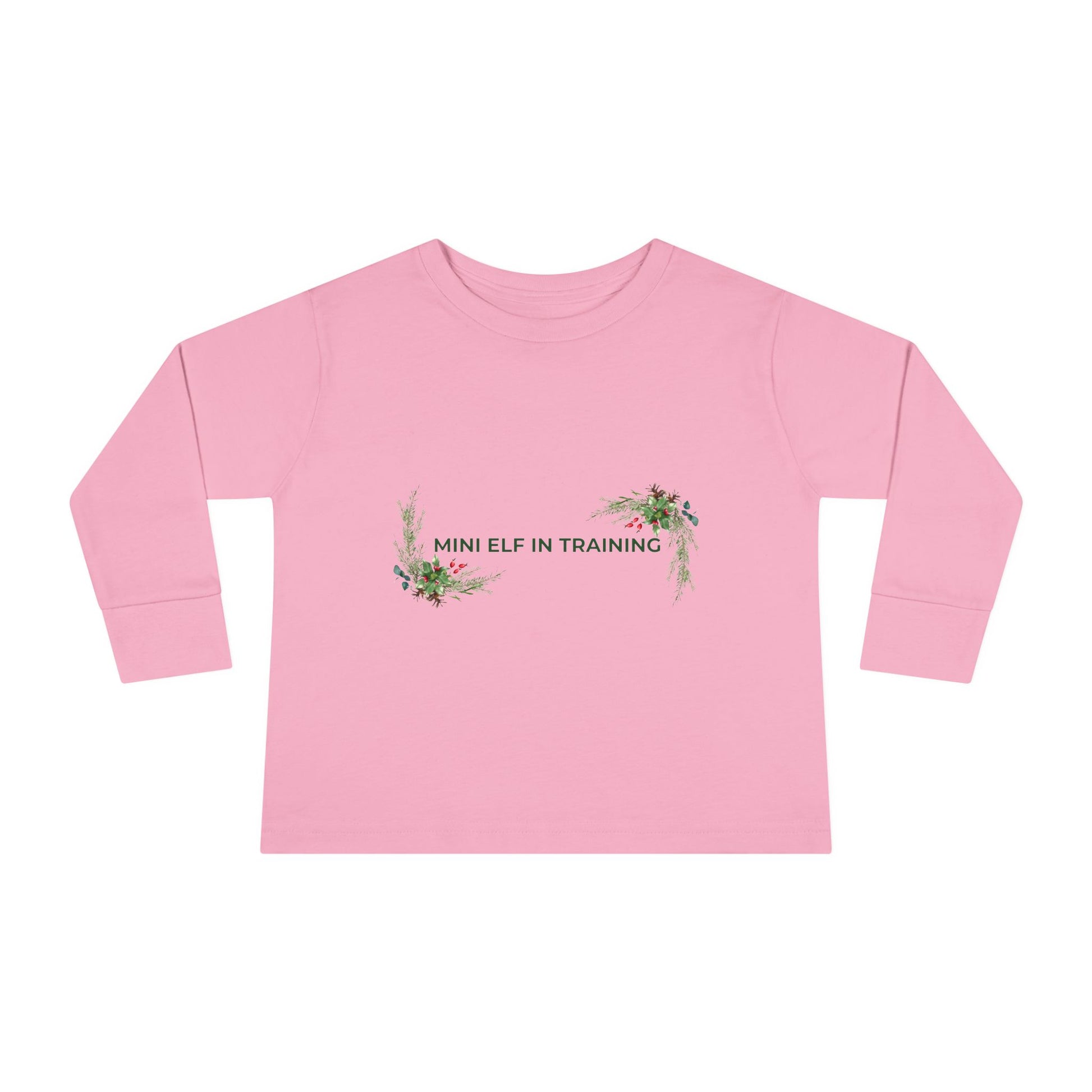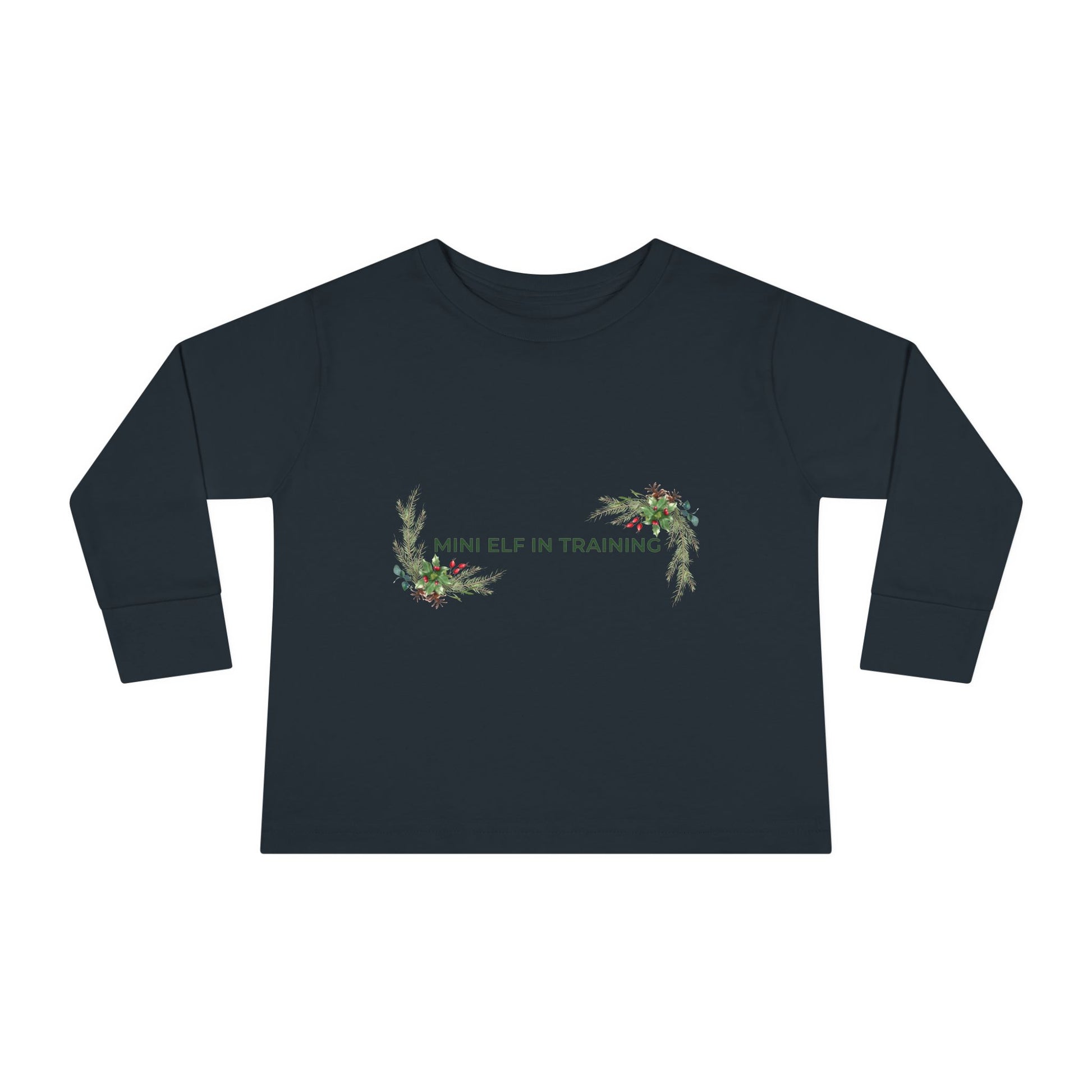 Toddler Long Sleeve Tee — "Mini Elf In Training" Holiday Floral Baby Shirt